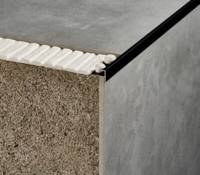 Perfil para peldaño Novopeldaño Mini – perfil de escalera de aluminio, con instalación simultánea con revestimiento cerámico