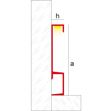 Este perfil es altamente polivalente y reversible. Puede colocarse, además de como rodapié, como remate intermedio o superior en la pared en dos posiciones distintas. Opcionalmente puede instalarse una tira de LED (no incluida) en cualquiera de los huecos interiores, pudiendo elegir entre una iluminación más discreta o más visible. En el hueco de mayor tamaño también puede colocarse una tira del mismo revestimiento, obteniendo un acabado totalmente integrado en la instalación.