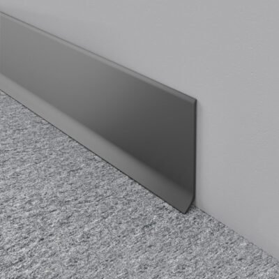 Rodapié de aluminio en acabado anodizado plata mate y lacado blanco mate de gran durabilidad. Fácil instalación.