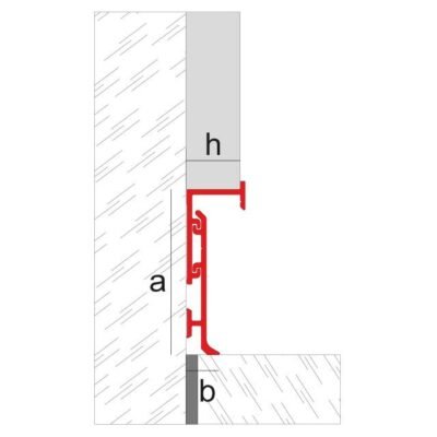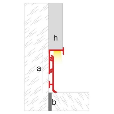 Innovador rodapié bicolor de pequeño tamaño, fabricado en aluminio, que potencia el efecto de pared suspendida una vez instalado.