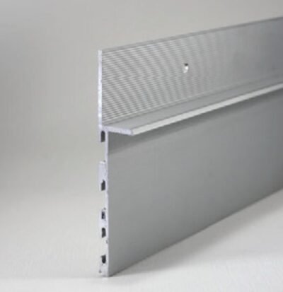 Zócalo minimalista fabricado en aluminio, diseñado para rematar, decorar y proteger la unión entre la pared y el suelo.